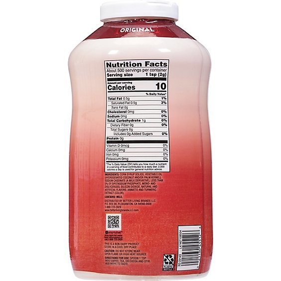 Signature SELECT Coffee Creamer Lactose Free Original - 35.3 Oz is a non-dairy creamer with 10 calories per teaspoon and 0 g of fat, sodium, and sugar per serving.