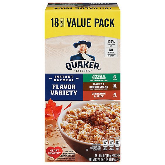 Quaker Oatmeal Instant Flavor Variety Value Pack - 18-1.51 Oz