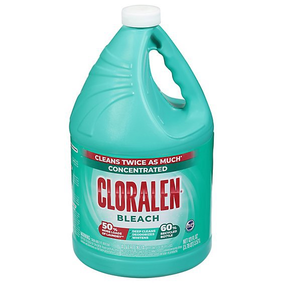 - Cloralen Concentrated is a bleach that cleans twice as much area, whitens, deodorizes and gives 50% more loads of laundry than the regular Cloralen bleach. Additionally, it is formulated for use in standard and HE machines, is made with 60% recycled bottle and can be used for stain removal. With its deep cleaning capabilities it will leave your home sparkling clean!