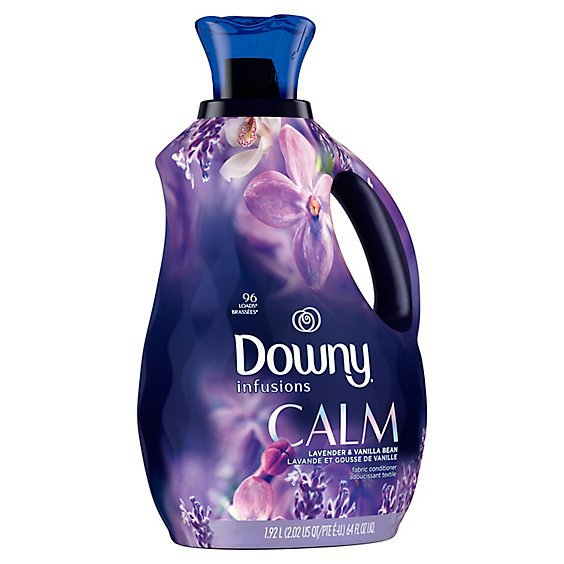 - Downy Infusions Calm Fabric Softener is a scented fabric enhancer that refreshes and softens clothing with the soothing scent of lavender and vanilla bean.