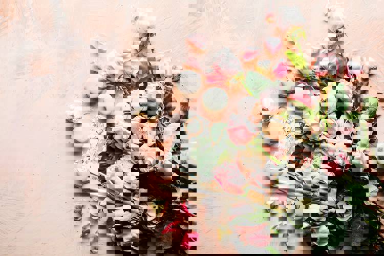Flowers plus one other thing. A bouquet by itself can look like a gas station stop. A bouquet with a box of chocolates or a card with a real message written inside looks like a complete thought. The second item signals you put something together rather than grabbed the first thing you saw.